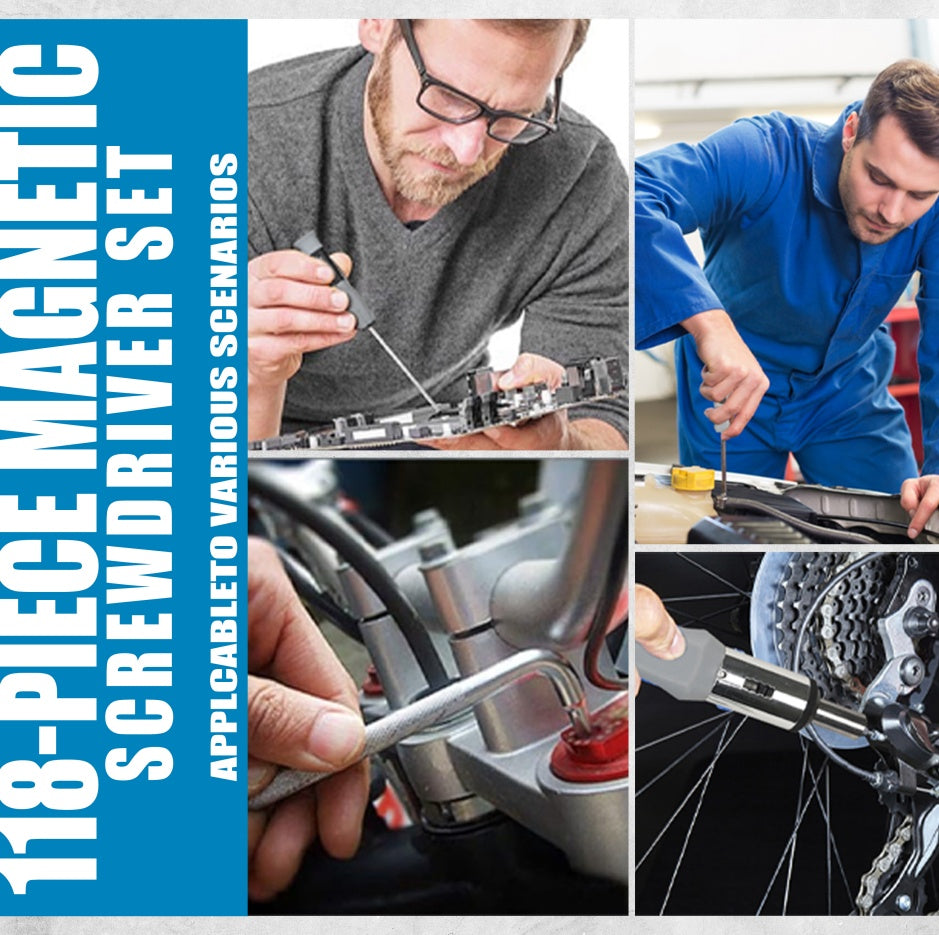 118-Piece Magnetic Screwdriver Set Professional Repair Tool Kit Ideal For Home Improvement And Automotive Maintenance