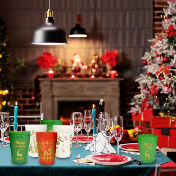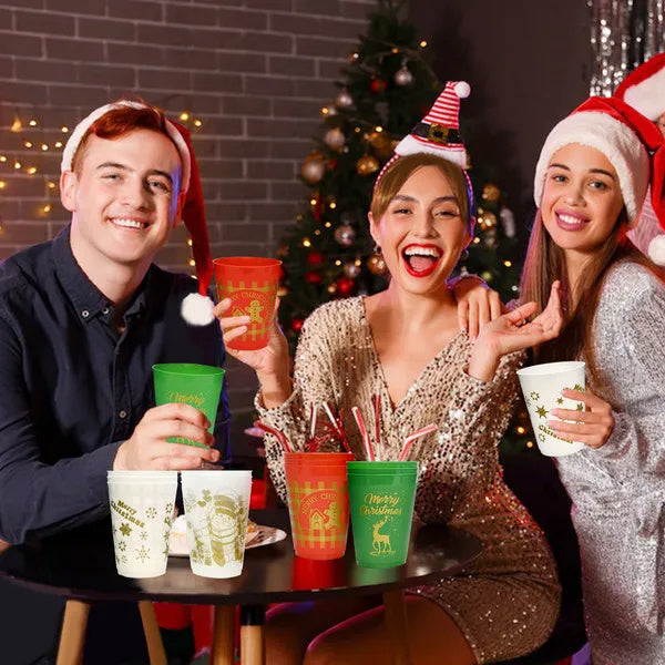 12 Pcs Christmas Plastic Tumblers Gingerbread Man Santa Reindeer Pattern 16 Oz Reusable Drink Cups Cute Beverage Cups For Beer Coffee Tea Xmas Holiday Party Supplies