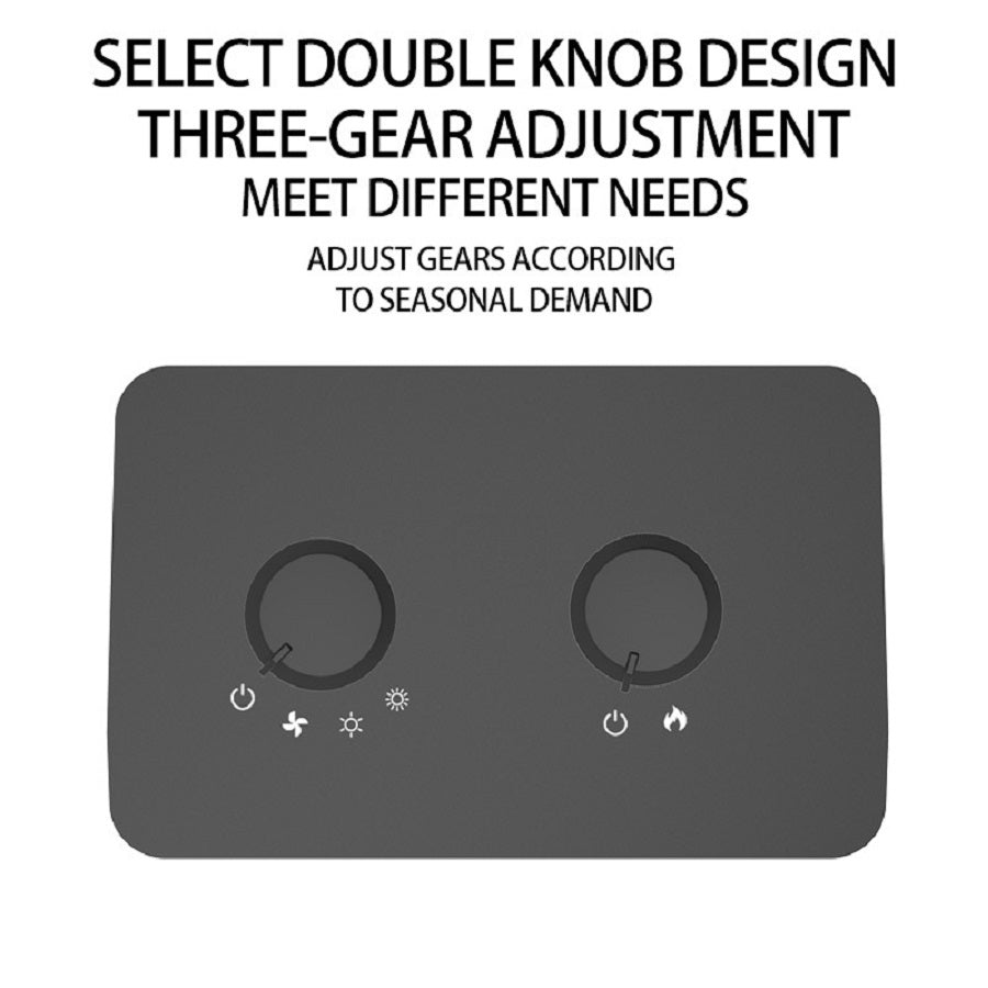 Technical Description: The appliance features a manual knob control system for straightforward operation. Users can directly adjust the fan speed and thermostat settings. This simple, intuitive interface ensures immediate response and reduces the potential for failure associated with complex electronic components, enhancing the product's overall durability and long-term reliability.