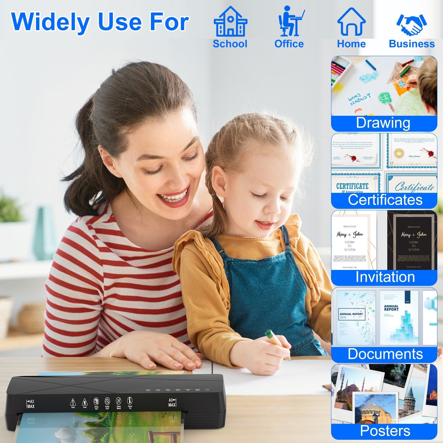 - *Portable For Multiple Uses*: Measuring 16.53*4.72*2.36in,this compact and lightweight thermal laminator machine is a perfect choice for individuals,teachers,business white-collar workers. Use our A3 personal laminator to preserve your precious memory captured in photo or protect important documents,certificates,reports.