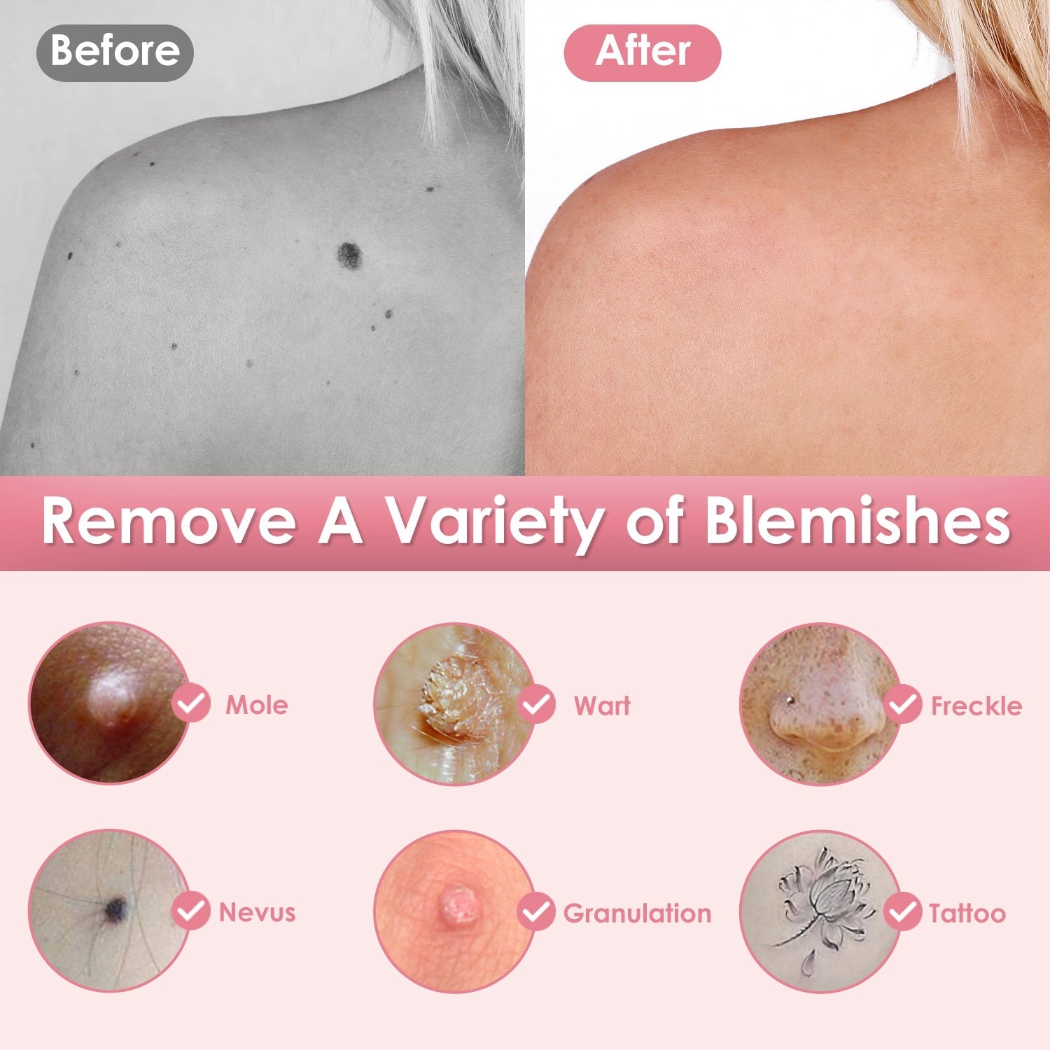 - *9 Adjustable Intensity Levels*: Featuring 9 levels of intensity,this mole removal pen offers precise adjustment for different skin issues,from small moles to large granuloma. You can select the most suitable level for various treatment areas and conditions,ensuring effective and safe use. Amazing results can be achieved without bleeding and with rapid healing of the skin.