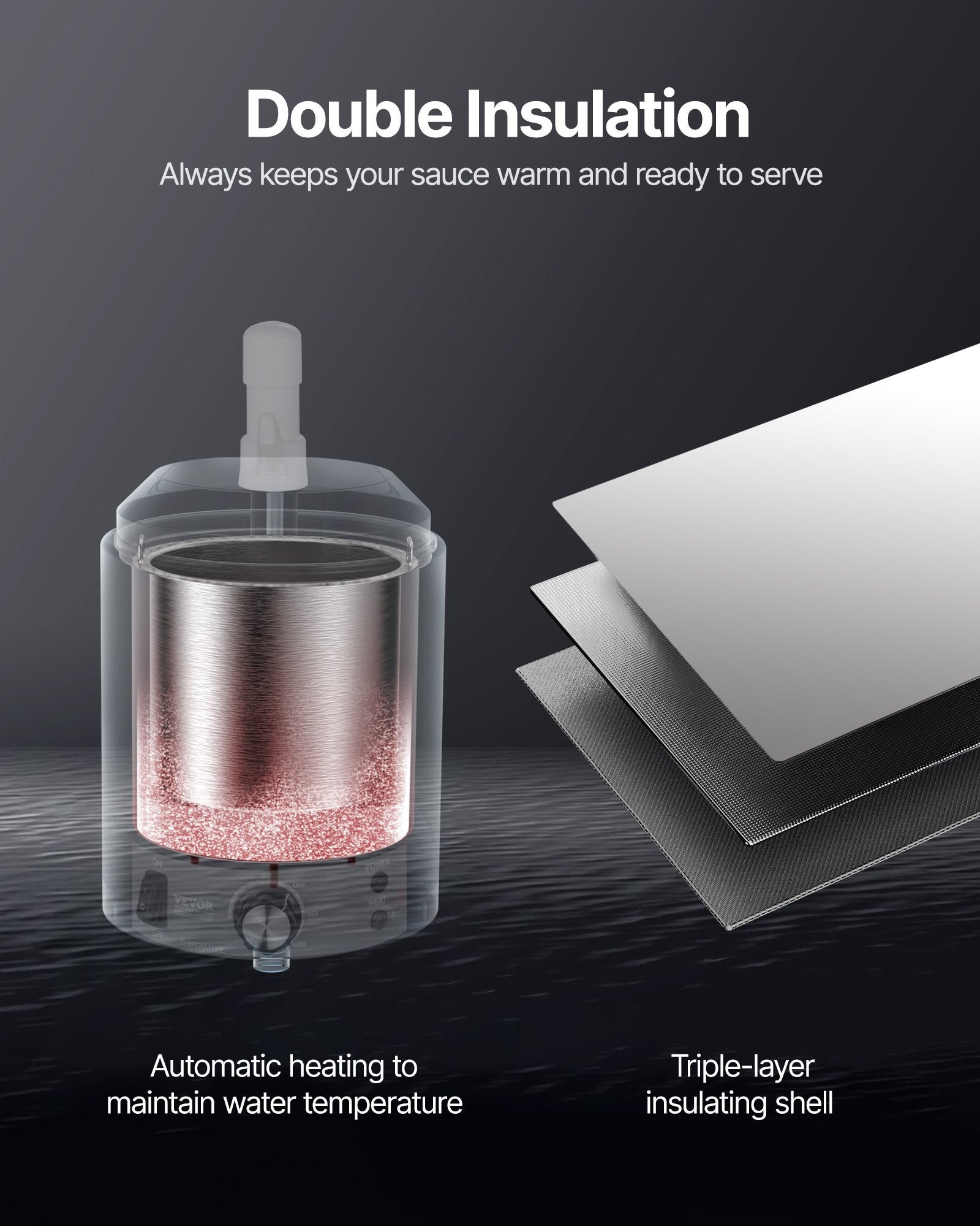 2.4L Electric Cheese Dispenser With Pump Commercial Hot Fudge Warmer 86F-230F