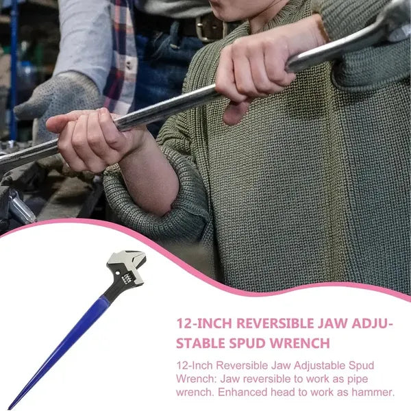 4-in-1 Multi-Function Adjustable Spud Wrench | C-Shaped Dual Head | Titanium Alloy | Universal Fit | Hammer & Crowbar Integration | Professional Grade For Industrial & Automotive Maintenance