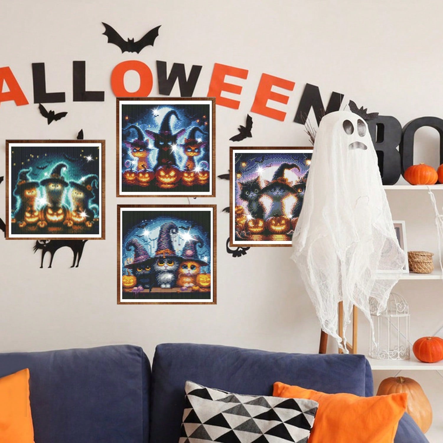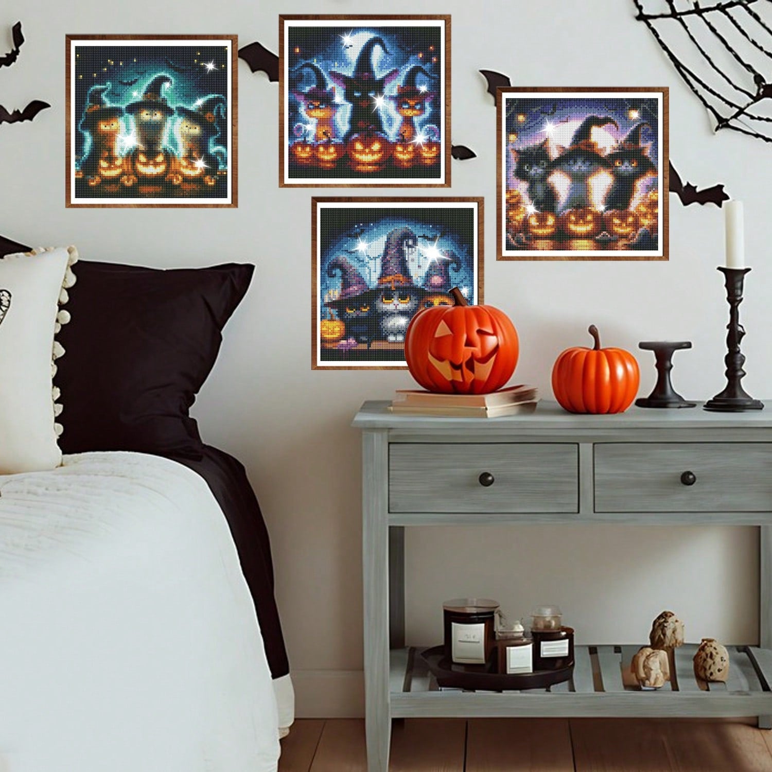 Discover the relaxing art of diamond painting with this charming 4-piece black cat collection! Perfect for adult beginners, each 12x12 inch canvas features adorable cat designs with full drill coverage, creating stunning gem art that's ideal for home wall decor.