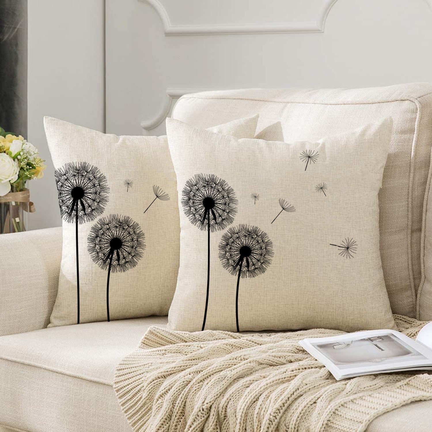 Beautiful Dandelion Printed Linen Pillow Cover Home Sofa Bedroom Cushion Cover