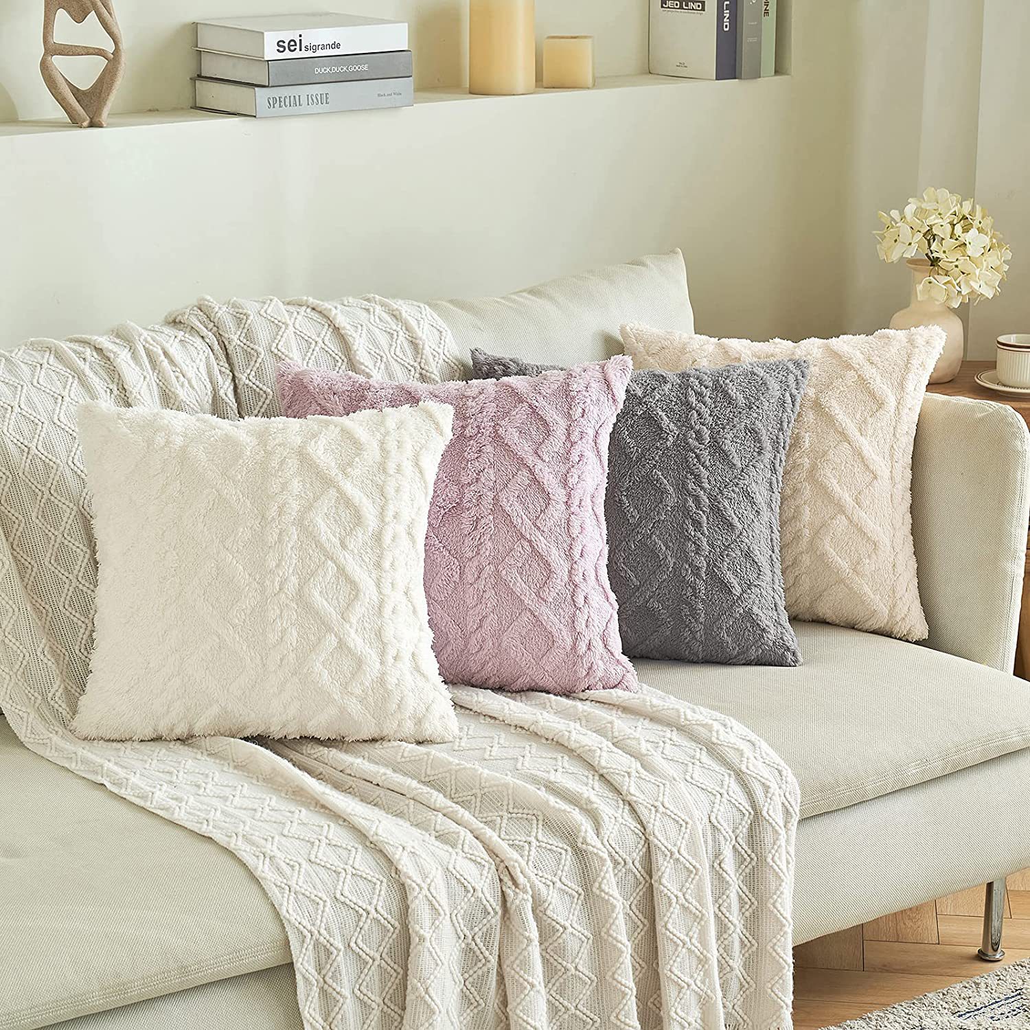 Cut Flower Pillow Cover Plush Jacquard Cushion Cover