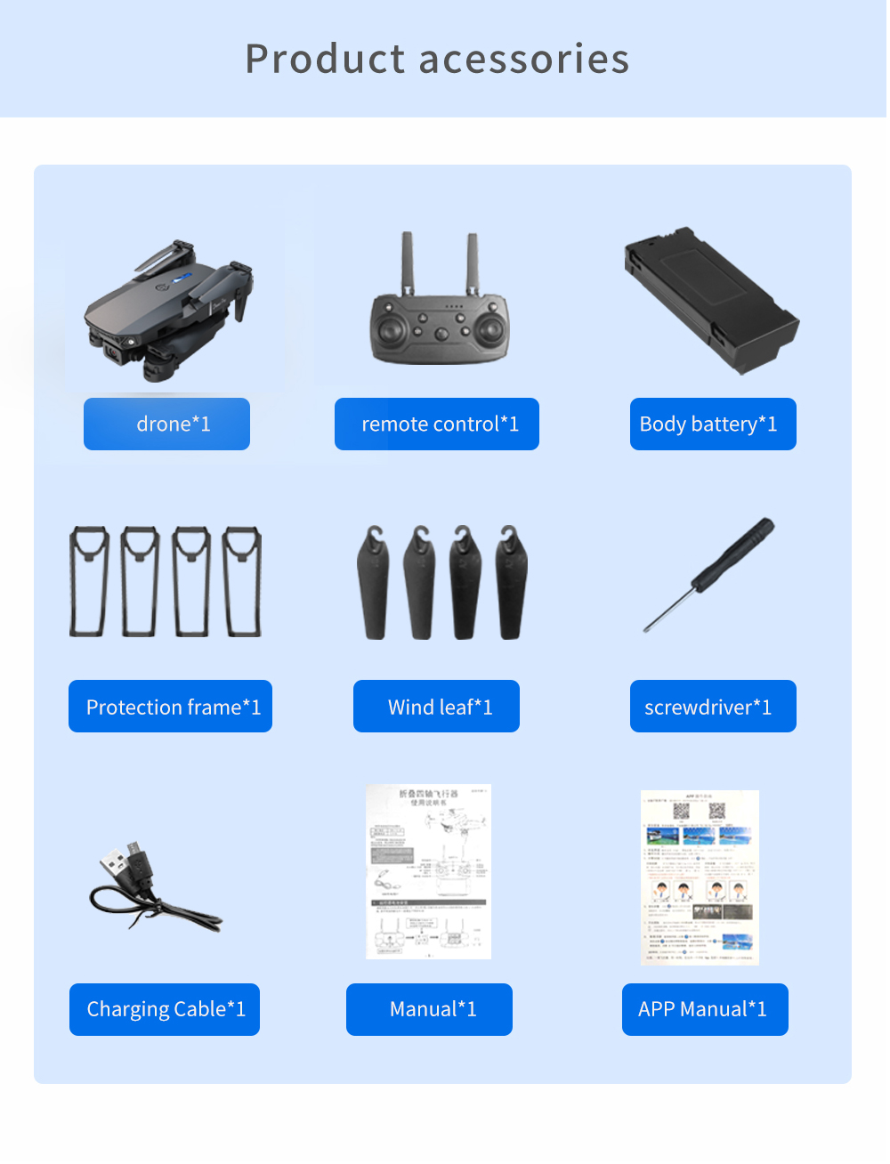 E88 Dual Camera Drone, WiFi FPV Double Folding RC Quadcopter Altitude Hold, Remote Control Toy For Beginners, Ideal Men's Gift For Outdoor Fun, Great For Christmas, Halloween, And Thanksgiving