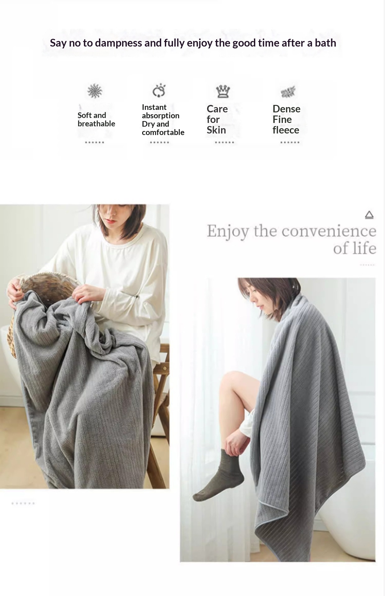 Extra Large Extra Thick Coral Fleece Bath Towelhighly Absorbent Soft And Quick Drying
