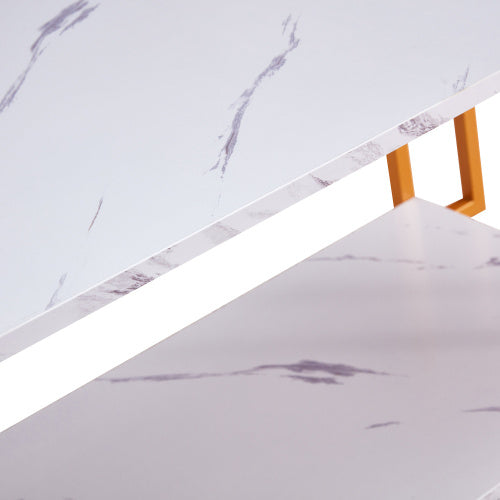 【 Fashion and Elegance 】 Composed of a faux composite panel top, marble texture, and golden metal legs, the coffee table showcases its natural beauty with modern design and simple structure. The classic white table and high-quality materials can be paired with any style of room, simple yet stylish
