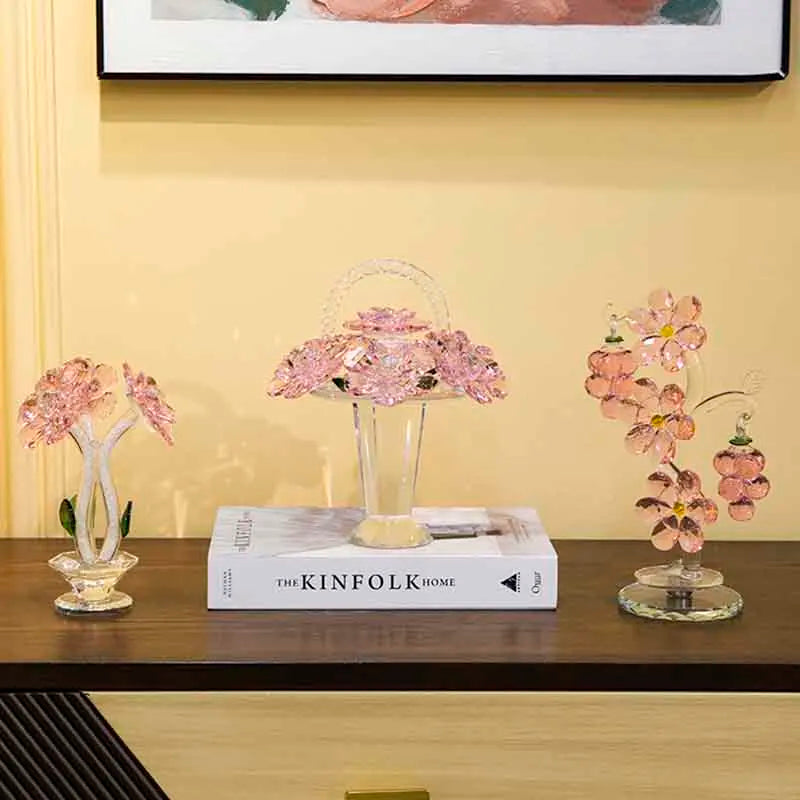 Flower Basket Sculpture, Room Decor, Crystal Crafts Ornaments, Home Office Desktop Decoration, Artwork Luxury Gifts,Customized