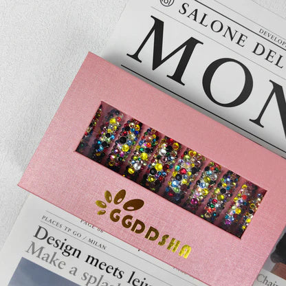 GGddsha 2025 Long Nail Designs Reusable PMMA AcrylicBaroque Glass Style Press-on Nails With Box Gifts ForWomen,Mosaic Mirage