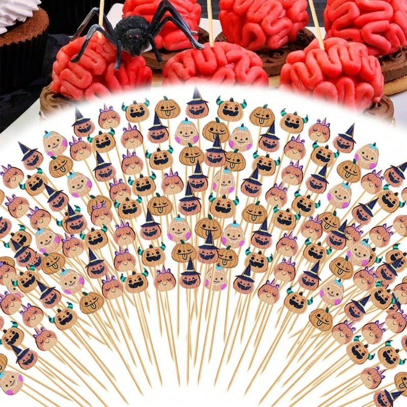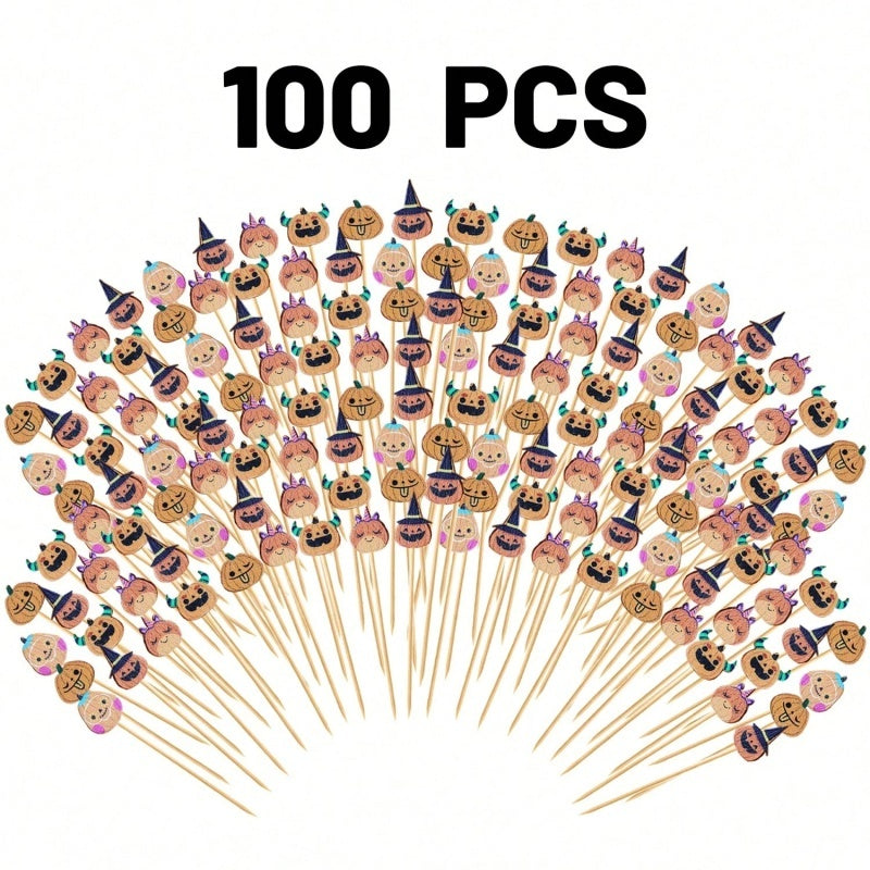 Halloween Pumpkin Bamboo Cocktail Picks - Decorative Party Toothpicks
