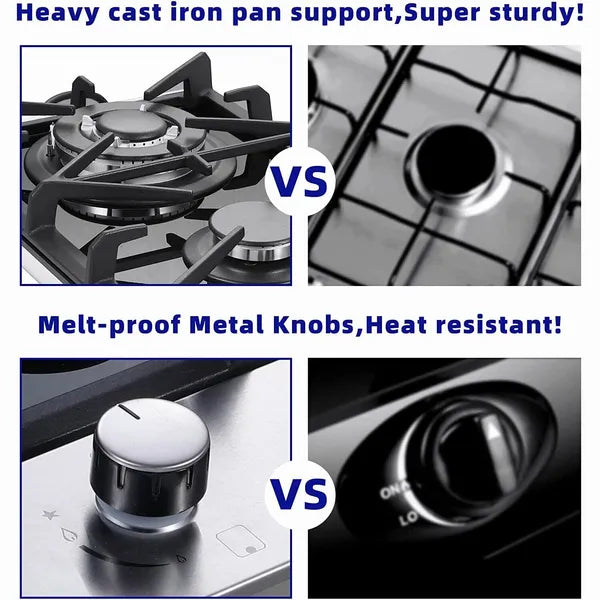 Kitchen Gas Cooktop 2 Dual Burners Tempered Glass Countertop Drop-in Gas Hob