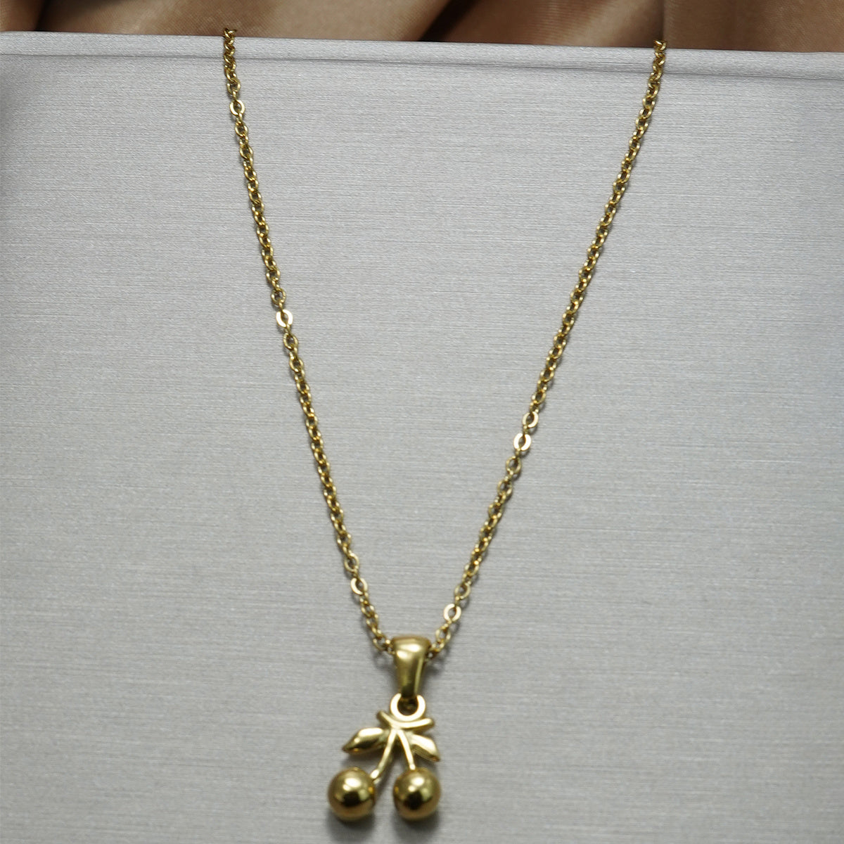 Lxalry 18K Gold Plated Stainless Steel Cherry Pendant Necklace And Earrings Set For Women - Cute Minimalist Jewelry For Daily Wear, Gifts, Summer Parties, And Anniversaries - Waterproof & Hypoallergen