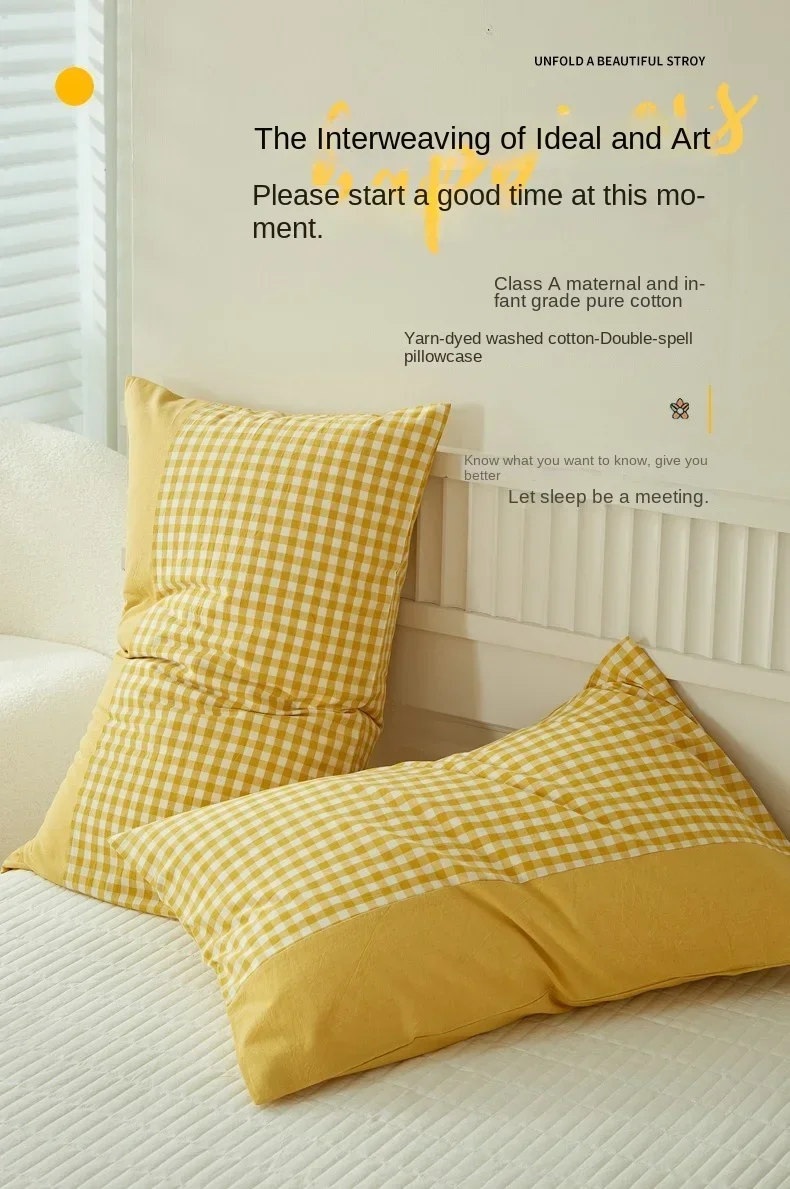 Pillowcase Envelope Style Plaid Couples Plain Ins 48x74cm 100% Pure Cotton Home Textile Household Bedroom Throw Pillow Case